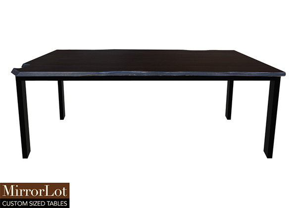 $1799 for 64x33 inch Table. This Mission table has a live edge shape tabletop with espresso stained with darker edge finish and black table legs and can be use as meeting table, standing desk, and more. From day to day, this 64x33 table blends into a space while still maintaining a sense of presence in everyday use. Its scale feels intentional in medium to large rooms, providing presence without dominating the space without complication. The table carries a friendly presence that encourages conversation as confidently well as togetherness.