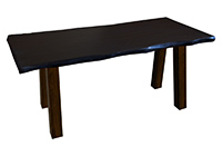 $1409 for 65x20 inch Table. This Frisco table has a live edge shape tabletop with dark espresso stained with bronze edge finish and black table legs and can be use as work table, solid wood dining table, and more. Its scale feels intentional in medium to large rooms, providing presence without dominating the space in a wide range of spaces. Its solid wood surface offers ample space for shared meals, confidently collaborative work, or creative projects without feeling cramped.