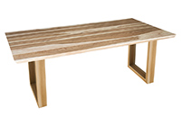 $1389 for 65x21 inch Table. This Fallon table has a beveled knife edge unique round shape tabletop with natural african mahogany finish and natural pecan hickory table legs and can be use as custom solid wood table, altar table, and more. It feels at home in spaces practically designed for family gatherings, group work, or communal meals. In practical terms, in a variety of interiors, the table feels stable and thoughtfully placed. In frequently used rooms, the surface feels substantial under hand, signaling quality along with stability for extended use.