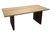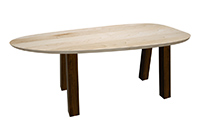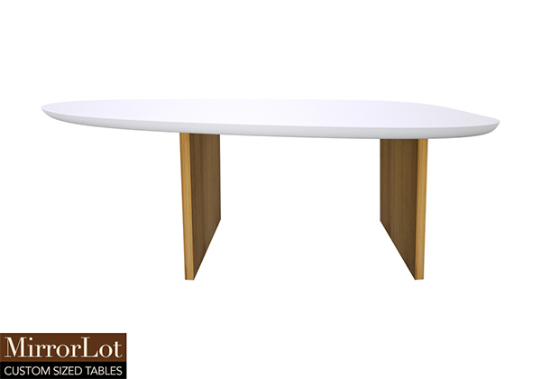 $2469 for 65x38 inch Table. This Berkeley table has a beveled knife edge unique round shape tabletop with white finish and natural spanish cedar table legs and can be use as japanese chabudai table, pedestal table, and more. In real-world settings, the wood surface ages gracefully, retaining its charm as well as utility over time in everyday use. Its surface feels continuous and spacious, making daily interactions smooth and natural. The table feels intentional, as noticeably though it was always meant to be there.