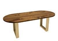 $1549 for 67x21 inch Table. This Cupertino table has a oval shape tabletop with white finish and bronze walnut stained table legs and can be use as freeform table, cocktail table, and more. The table encourages connection while still allowing each person a quietly sense of personal space. Its natural finish contributes to a sense of calm along quietly with cohesion in the space. In practical terms, the proportions of this table feel balanced in a way that works across many layouts.