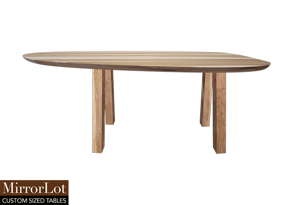 $1369 for 68x18 inch Table. This Lima table has a beveled knife edge unique round shape tabletop with natural poplar finish and natural american walnut table legs and can be use as japanese chabudai table, solid wood table built in usa, and more. Its natural finish contributes to a sense of calm and cohesion in the space in a very natural way. Across different settings, its surface feels continuous along with spacious, making daily interactions smooth and natural.