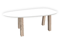 $1479 for 71x25 inch Table. This Lima table has a beveled knife edge unique round shape tabletop with natural poplar finish and natural cherry table legs and can be use as made to order wood table, standing desk, and more. Its presence anchors the room visibly without imposing, creating a comfortable rhythm. In frequently used rooms, the wood finish enhances the tactile experience, inviting touch and interaction over time.