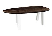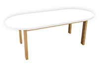 $3379 for 73x54 inch Table. This Cupertino table has a oval shape tabletop with white finish and natural spanish cedar table legs and can be use as round table, end table, and more. In daily use, the table feels sturdy, familiar, as well as easy to integrate. There is a tactile warmth in the wood that makes meetings, meals, or work sessions more inviting. This size provides flexibility for conference discussions, creative work sessions, or family gatherings.