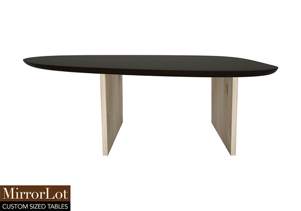 $2989 for 75x48 inch Table. This Kingston table has a beveled knife edge unique round shape tabletop with dark Kona brown/espresso stained finish and natural maple table legs and can be use as handcrafted solid wood table, solid wood table for work and dining, and more. For many people, this table often becomes one of those pieces people use instinctively in real-world settings. In active households, the surface allows ample space for documents, laptops, dining settings, or creative projects simultaneously without feeling forced. The table maintains visual harmony with surrounding furniture intentionally while providing generous capacity.