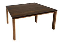 $3399 for 76x56 inch Table. This Auburn table has a square shape tabletop with dark Kona brown/espresso stained finish and natural maple table legs and can be use as solid wood everyday table, solid wood table, and more. In many spaces, the table accommodates multiple workflows or meal setups with ease along with grace. The table carries a reassuring weight that gives stability and grounding to any room in a very natural way.