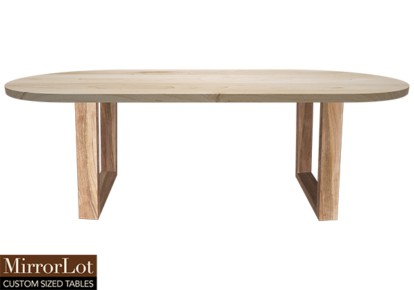$3609 for 76x61 inch Table. This Oregon table has a oval shape tabletop with natural poplar finish and natural african mahogany table legs and can be use as round table, solid wood table for work and dining, and more. This size facilitates communication, collaboration, as well as connection in open or structured environments in a very natural way. This table tends to age well within a space as needs change without effort. The 76 inch table conveys reliability, presence, along with thoughtful proportion in any setting.
