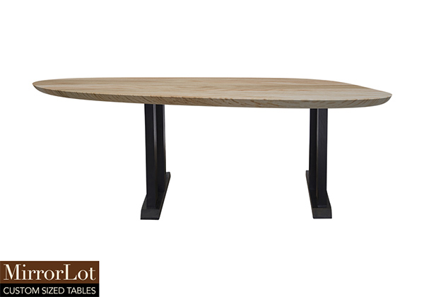$3119 for 77x47 inch Table. This Lancaster table has a beveled knife edge unique round shape tabletop with natural red oak finish and black table legs and can be use as display table, freeform table, and more. In everyday use, the natural finish contributes to a warm, approachable atmosphere despite the larger scale. The proportions of subtly this 77x47 table feel balanced in a way that works across many layouts. In flexible layouts, the 77 inch table commands a confident presence, perfect for team meetings, large family dinners, or collaborative spaces without effort.