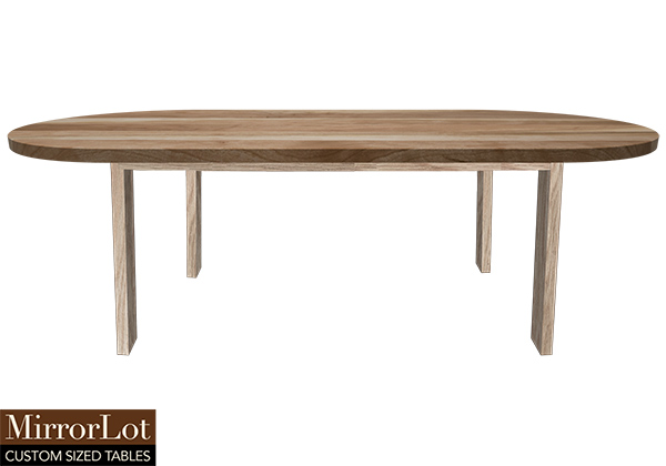$1929 for 81x26 inch Table. This Fallon table has a beveled knife edge unique round shape tabletop with natural african mahogany finish and natural spanish cedar table legs and can be use as banquet table, custom solid wood dining table, and more. As needs evolve, in both personal while also shared spaces, this table feels naturally functional without feeling excessive. This size facilitates communication, collaboration, as well as noticeably connection in open or structured environments. The table’s surface feels intentionally sturdy as well as reliable, signaling quality in both private and public spaces.