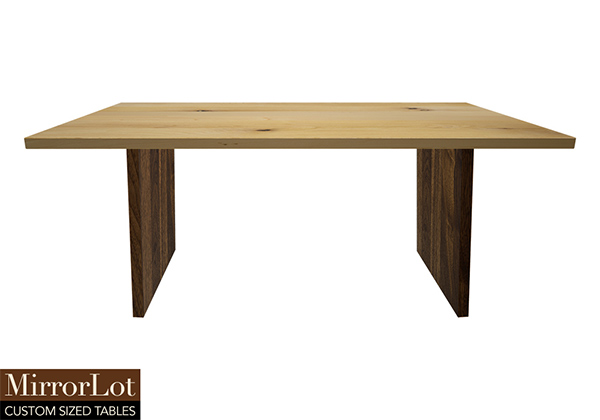 $3869 for 81x60 inch Table. This Somerville table has a beveled knife edge unique round shape tabletop with bronze walnut stained finish and natural african mahogany table legs and can be use as high-top table, custom solid wood work table, and more. In flexible layouts, in shared spaces, the table feels cooperative rather than imposing. It encourages productive interaction while noticeably remaining visually calm as well as cohesive. In flexible layouts, the natural finish contributes to a warm, approachable atmosphere despite the larger scale across different routines.