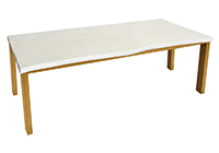 $2279 for 83x36 inch Table. This Allentown table has a beveled knife edge unique round shape tabletop with old rustic relaim dark tone with white textures finish and natural red oak table legs and can be use as freeform table, dining & eating tables, and more. This table tends to consistently blend function as well as presence in a way that feels effortless. From day to day, its proportions create balance in rooms that host multiple activities simultaneously. Its wood surface enhances both the sensory and practical experience of communal or work-related activities in a wide range of spaces.