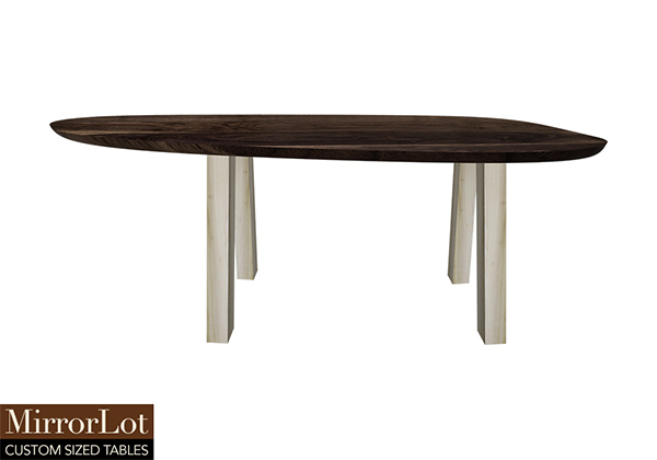 $4889 for 83x62 inch Table. This Plano table has a beveled knife edge unique round shape tabletop with natural american walnut finish and black table legs and can be use as formal dining table, bistro table, and more. It encourages productive interaction while remaining visually calm as well as cohesive without feeling forced. Its weight as well thoughtfully as balance make it feel substantial yet never overbearing. The 83 inch table’s footprint feels carefully considered rather than arbitrary without feeling forced.