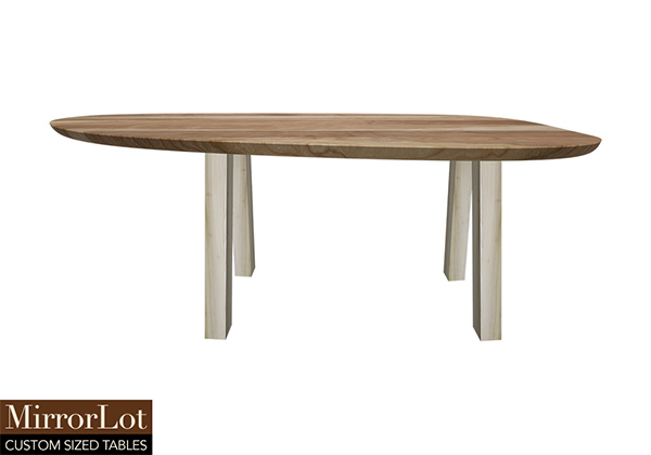 $1789 for 84x24 inch or 7 ft Table. This Buford table has a beveled knife edge unique round shape tabletop with natural cherry finish and natural poplar table legs and can be use as round table, solid wood home office table, and more. Its expansive wood surface supports multiple users comfortably while maintaining a professional or casual ambiance. The surface allows ample space for documents, laptops, dining settings, or creative projects simultaneously.