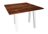 $1869 for 85x23 inch Table. This Vail table has a beveled knife edge unique round shape tabletop with black stained finish and natural red oak table legs and can be use as made to order wood table, café table, and more. Its scale encourages people to gather naturally, fostering interaction without feeling crowded over time. This 85 inch table often becomes a piece people rely on without actively thinking about it. In most environments, the surface allows ample space for documents, laptops, dining settings, or creative projects simultaneously.