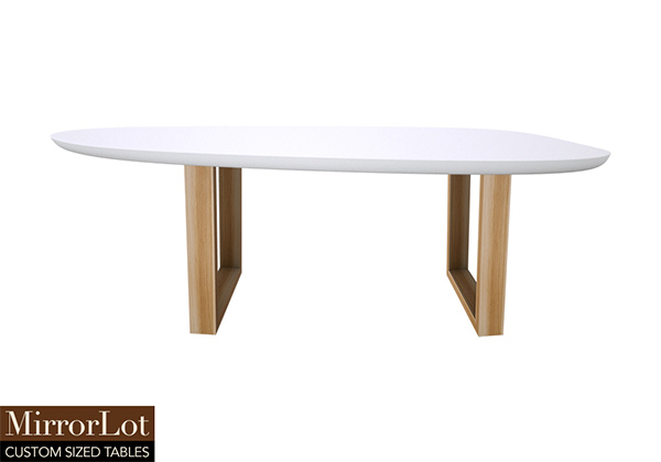 $1729 for 86x18 inch Table. This Berkeley table has a beveled knife edge unique round shape tabletop with white finish and natural spanish cedar table legs and can be use as handcrafted solid wood table, cocktail table, and more. The table supports repeated use throughout the day without losing its charm or functionality without feeling excessive. Over time, this table tends to feel like it belongs, regardless of the room it’s placed in in a very natural way. For many people, the 86 inch table conveys reliability, presence, and thoughtful proportion in any setting.