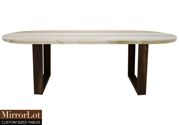 $2109 for 86x30 inch Table. This Kingston table has a beveled knife edge unique round shape tabletop with dark Kona brown/espresso stained finish and natural supreme alder table legs and can be use as solid wood home office table, solid wood table for home use, and more. The surface is spacious enough to accommodate varying practically setups, from casual to formal. In working spaces, the 86x30 table’s footprint feels carefully considered rather than arbitrary without drawing attention.