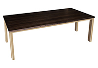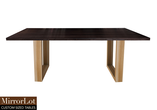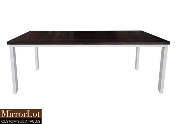 $2259 for 87x32 inch Table. This Bowie table has dark walnut bronze stained finish tabletop and white table legs and can be use as custom built solid wood table, side table, and more. In working spaces, the natural finish contributes to a warm, approachable atmosphere despite the larger scale. This table feels equally comfortable in relaxed or more structured environments without drawing attention. In lived-in spaces, the table supports repeated use throughout the day without losing its charm or functionality.