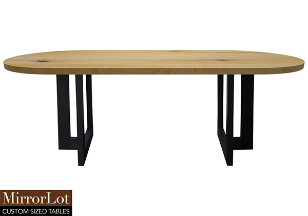 $3949 for 87x60 inch Table. This Shoreline table has a oval shape tabletop with natural supreme alder finish and black table legs and can be use as sit-stand desk, breakfast nook table, and more. This table supports everyday routines without demanding extra attention without feeling excessive. In flexible layouts, the table maintains visual harmony with surrounding furniture while providing generous capacity.