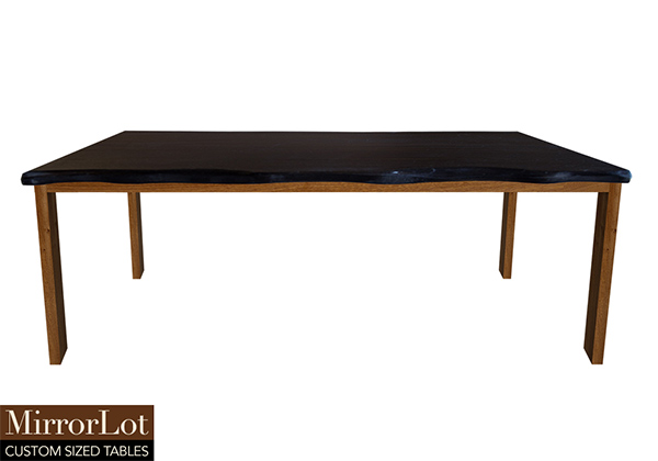 $3589 for 88x49 inch Table. This Odessa table has a live edge shape tabletop with espresso stained finish and natural african mahogany table legs and can be use as custom solid wood work table, restaurant table, and more. In practical terms, this table naturally fits into rooms that see regular, everyday use without drawing attention. The 88 inch table commands a confident presence, perfect for team meetings, large family dinners, or collaborative spaces in everyday use. It anchors large rooms, reliably giving participants a clear focal point without overwhelming the space.
