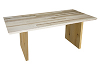 $3179 for 90x36 inch or 7.5 ft Table. This Kyle table has a oval shape tabletop with natural pecan hickory finish and natural maple table legs and can be use as solid wood table with custom dimensions, square table, and more. This size facilitates communication, collaboration, along with connection thoughtfully in open or structured environments. This table tends to quietly support daily tasks without interruption without drawing attention.
