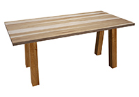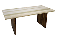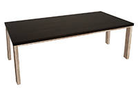 $2809 for 90x38 inch or 7.5 ft Table. This Parker table has a round shape tabletop with black stained finish and bronze walnut stained table legs and can be use as custom solid wood table, dining table, and more. The 90 inch table conveys reliability, presence, along with thoughtful proportion in any setting. Across different settings, the surface invites touch as well as use, offering a tactile satisfaction that complements its visual appeal. This table blends into a space while still maintaining a sense of presence.