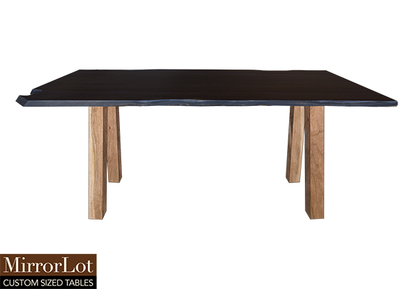 $3429 for 94x47 inch Table. This Mission table has a live edge shape tabletop with espresso stained with darker edge finish and natural cherry table legs and can be use as solid wood table for work and dining, side table, and more. The table maintains consistently visual harmony with surrounding furniture while providing generous capacity. The wood grain along with finish add depth and texture, enhancing both professional and social settings.