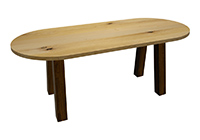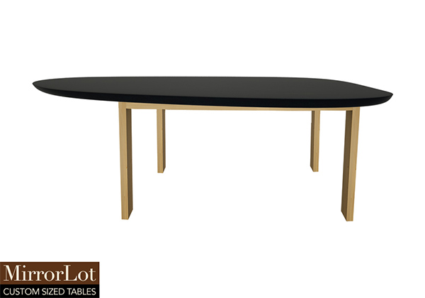 $2499 for 97x27 inch Table. This Vail table has a beveled knife edge unique round shape tabletop with black stained finish and natural supreme alder table legs and can be use as foyer table, custom solid wood table, and more. In frequently used rooms, it provides a stable, inviting surface that inspires productivity while also connection across different routines. Built with daily routines in mind, this table feels natural in a wide range of interiors. Across different settings, the tactile quality of the wood enhances both usability along with aesthetic appeal without feeling forced.