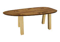 $6719 for 99x60 inch Table. This Jamestown table has a round shape tabletop with natural pecan hickory finish and natural supreme alder table legs and can be use as console table, custom built wood table, and more. Over time, its proportions help large spaces feel purposeful as well as anchored as part of normal use. Its scale allows participants to spread out comfortably, maintaining personal space without sacrificing group cohesion without effort.